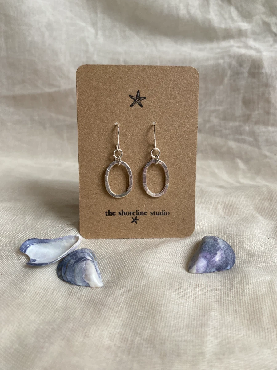 Sterling silver dangle earrings, with hand hammered and shaped silver circles.