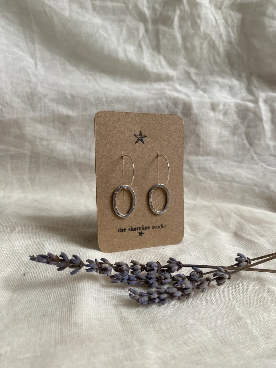 Sterling silver hoop earrings, with hand hammered silver circles.