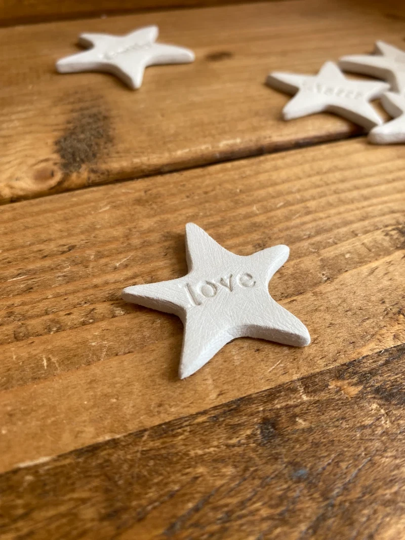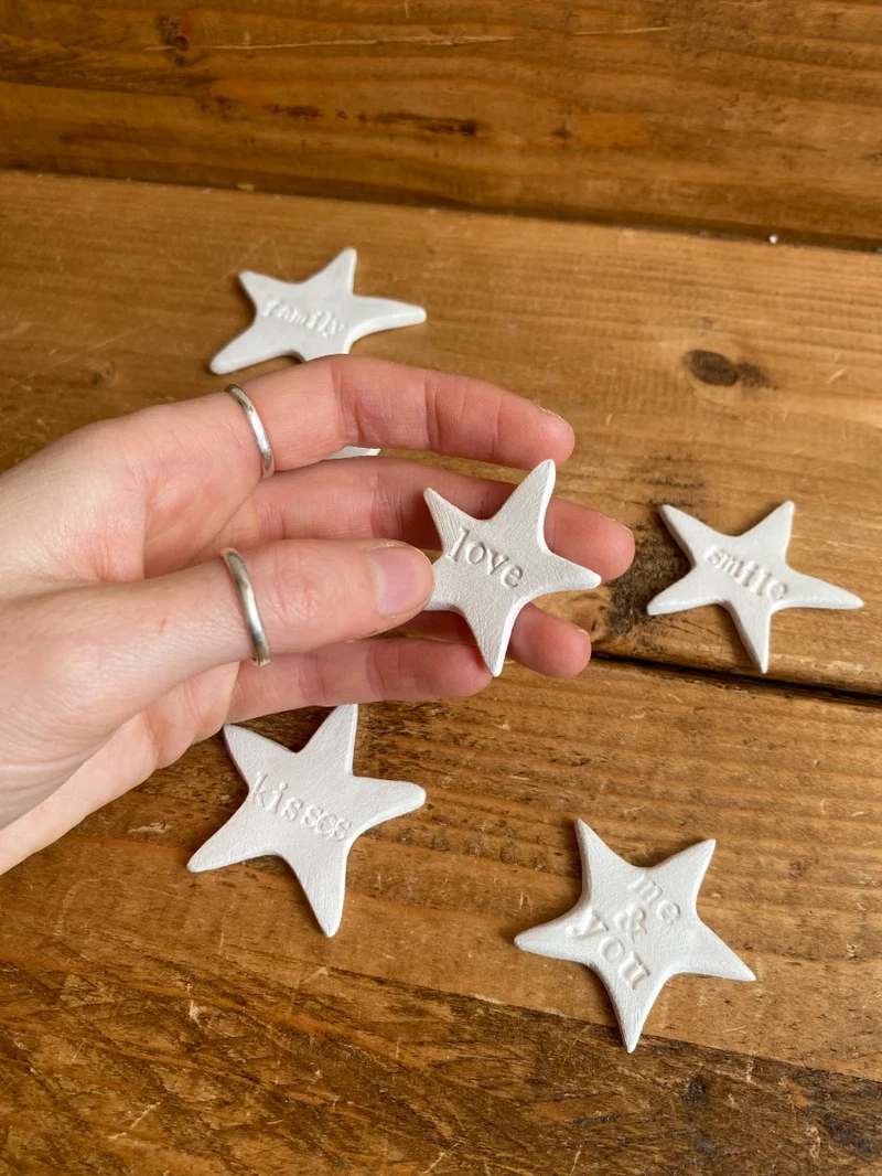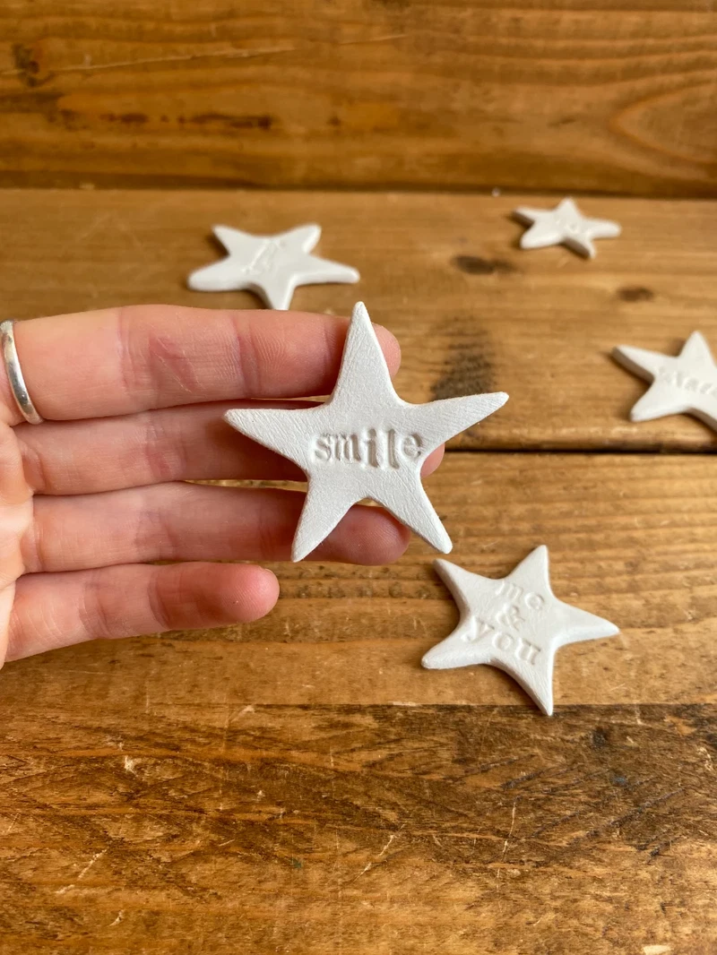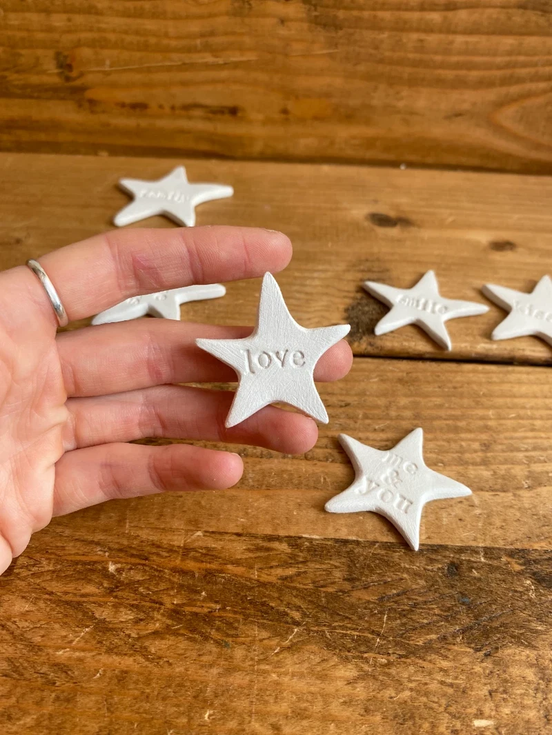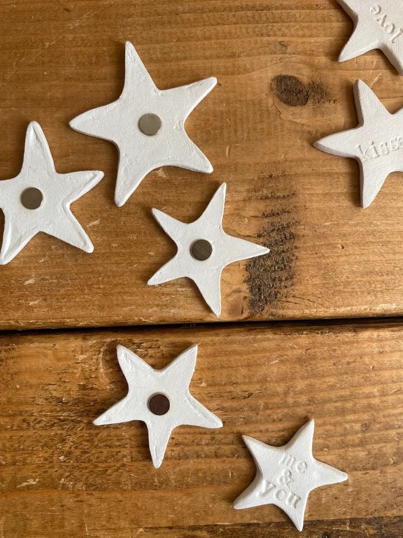 Hand made clay magnet stars, small and simple.