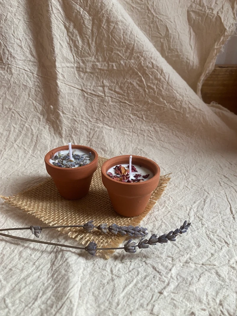 Mini Plant Pot Candles Classic, Rose & Lavender