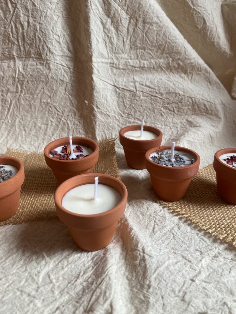 Bring a little piece of the garden inside with these mini terracotta plant pot hand-poured soy wax candles, all unscented.