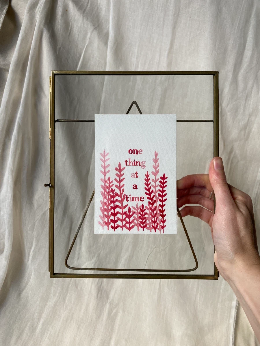 Frame measures 20 x 26 cm, postcard measures 10 x 15 cm.