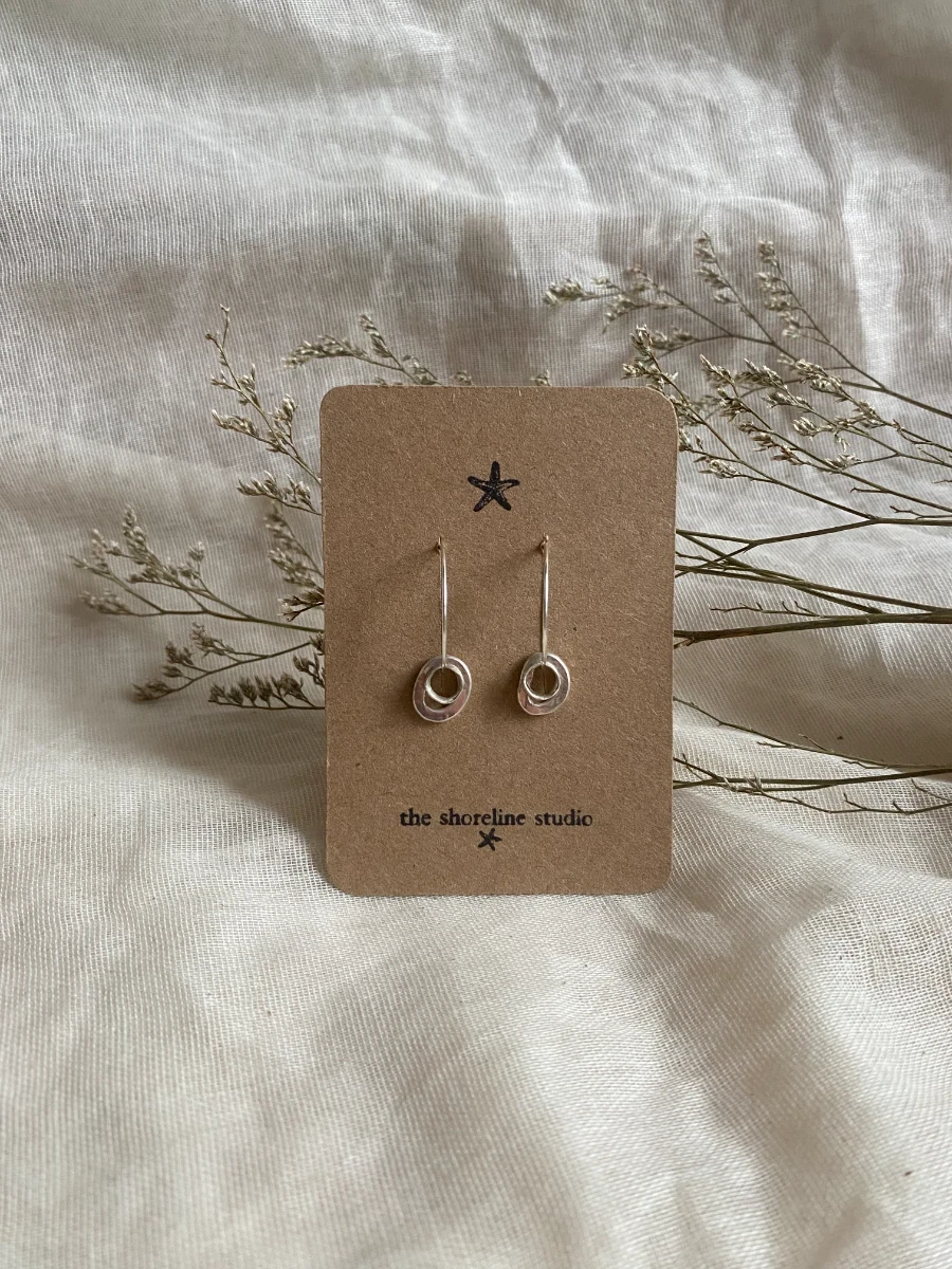 Sterling silver hoop earrings, with double hand hammered and delicately shaped silver loops.