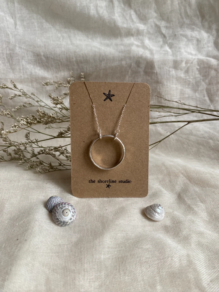 Sterling silver hammered ring necklace, hammered and shaped by hand.