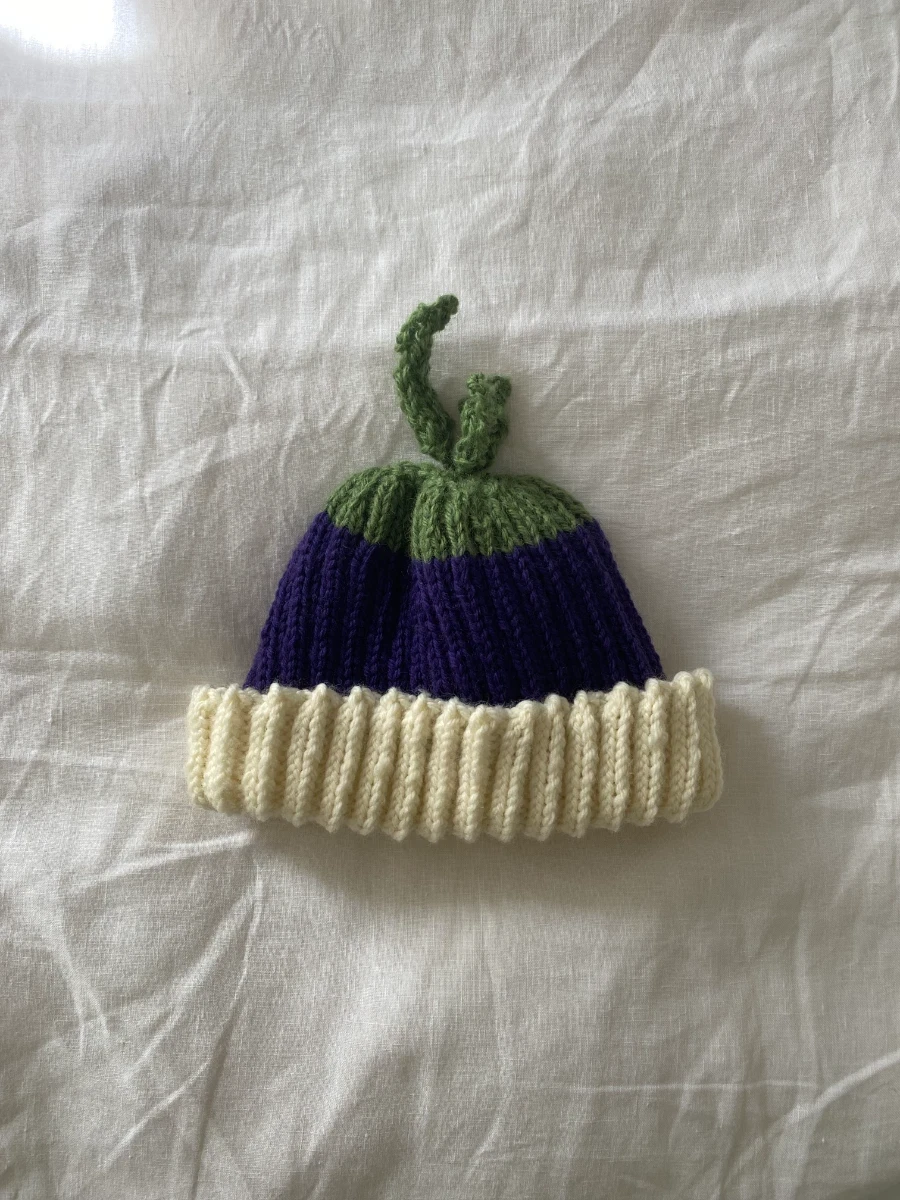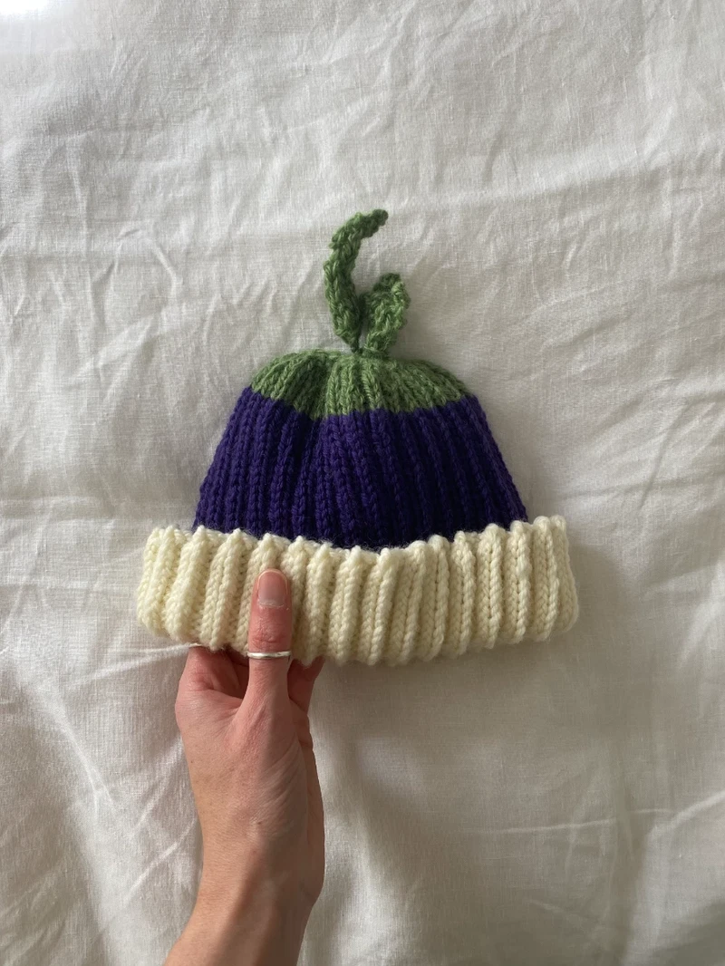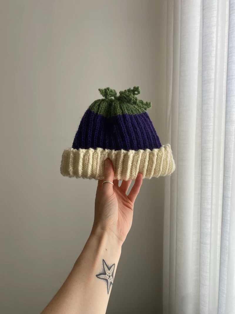 Hand knitted using soft and durable 12 ply Morris & Sons 100% Australian wool, this turnip hat is a one-of-a-kind creation.